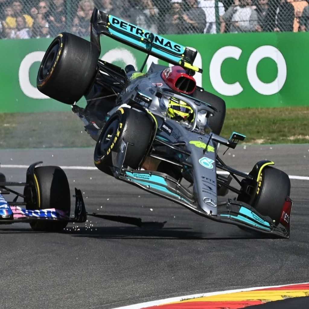 Tutto è scaturito da un violento contatto avuto alla curva in uscita dal rettilineo del Kemmel dove per stessa ammissione di Hamilton quest’ultimo ha chiuso troppo Alonso e nel contatto la Mercedes si è letteralmente sollevata sopra l’anteriore sinistra di Alonso per poi sbattere violentemente all’atterraggio e riempire d’olio la pista; fuori per contatto anche un incolpevole Bottas colpito da Latifi in testacoda nella ghiaia.